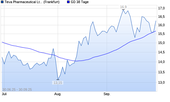 Mit dem Rücksetzer auf 15,60 EUR hat die Teva Pharmaceutical ADR-Aktie am 29.09.2025 die 38-Tage-Linie nach unten gekreuzt.