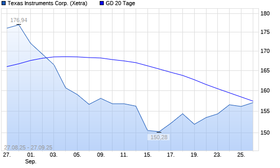 Mit dem Anstieg auf 159,32 EUR hat die Texas Instruments-Aktie am 26.09.2025 die 20-Tage-Linie nach oben gekreuzt.