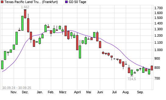 Mit dem Anstieg auf 823,00 EUR hat die Texas Pacific Land-Aktie am 29.09.2025 die 50-Tage-Linie nach oben gekreuzt.