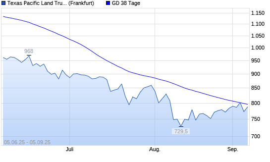 Mit dem Rücksetzer auf 773,50 EUR hat die Texas Pacific Land-Aktie am 04.09.2025 die 38-Tage-Linie nach unten gekreuzt.
