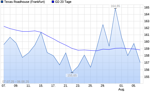 Mit dem Anstieg auf 159,75 EUR hat die Texas Roadhouse-Aktie am 05.08.2025 die 20-Tage-Linie nach oben gekreuzt.