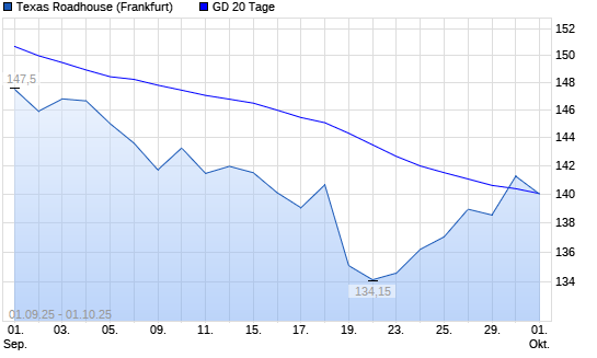 Mit dem Anstieg auf 141,40 EUR hat die Texas Roadhouse-Aktie am 30.09.2025 die 20-Tage-Linie nach oben gekreuzt.