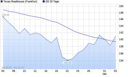 Mit dem Anstieg auf 140,55 EUR hat die Texas Roadhouse-Aktie am 03.10.2025 die 20-Tage-Linie nach oben gekreuzt.