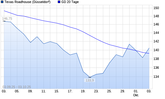 Mit dem Rücksetzer auf 138,30 EUR hat die Texas Roadhouse-Aktie am 02.10.2025 die 20-Tage-Linie nach unten gekreuzt.