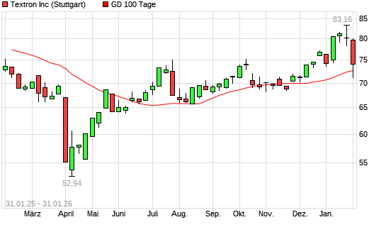 Mit dem Anstieg auf 73,52 EUR hat die Textron-Aktie am 30.01.2026 die 100-Tage-Linie nach oben gekreuzt.