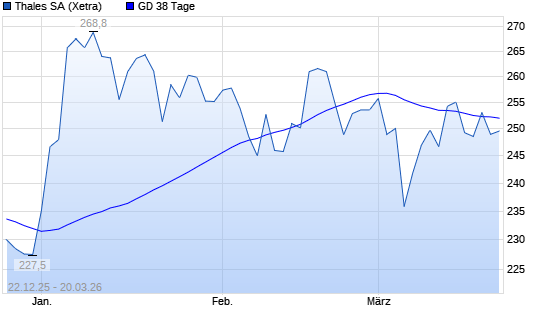 Mit dem Rücksetzer auf 249,40 EUR hat die Thales-Aktie am 19.03.2026 die 38-Tage-Linie nach unten gekreuzt.