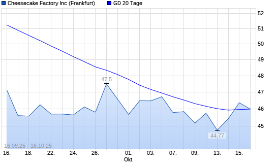 Mit dem Anstieg auf 46,37 EUR hat die The Cheesecake Factory-Aktie am 15.10.2025 die 20-Tage-Linie nach oben gekreuzt.