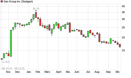 Mit dem Rücksetzer auf 16,20 EUR hat die The Geo Group REIT-Aktie (ISIN US36162J1060) am 07.10.2025 ein neues 6-Monats-Tief erreicht und damit den Kurs vom 06.10.2025 eingestellt.
