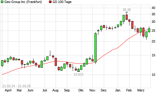 Mit dem Anstieg auf 26,69 EUR hat die The Geo Group REIT-Aktie am 20.03.2025 die 100-Tage-Linie nach oben gekreuzt.