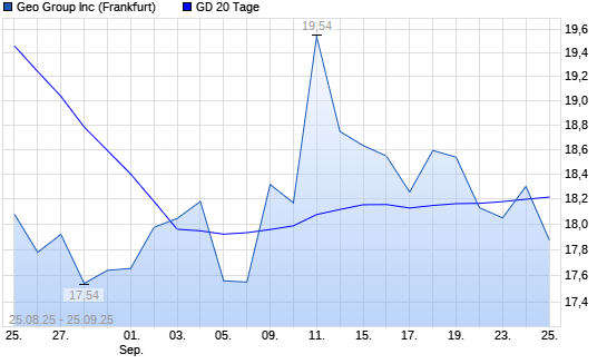 Mit dem Anstieg auf 18,30 EUR hat die The Geo Group REIT-Aktie am 24.09.2025 die 20-Tage-Linie nach oben gekreuzt.