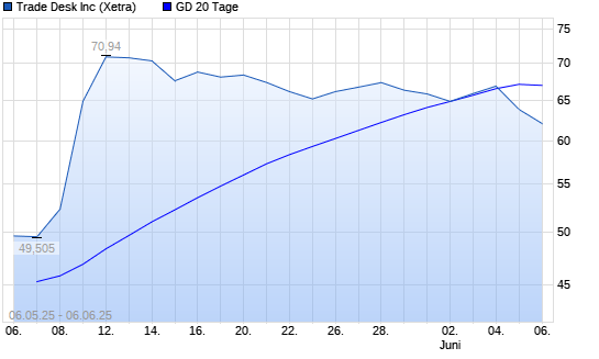 Mit dem Rücksetzer auf 62,31 EUR hat die The Trade Desk-Aktie am 05.06.2025 die 20-Tage-Linie nach unten gekreuzt.