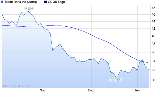 Mit dem Rücksetzer auf 32,01 EUR hat die The Trade Desk-Aktie am 08.01.2026 die 38-Tage-Linie nach unten gekreuzt.