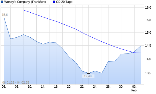 Mit dem Anstieg auf 14,64 EUR hat die The Wendy's Company-Aktie am 03.02.2025 die 20-Tage-Linie nach oben gekreuzt.