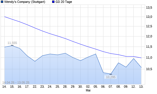 Mit dem Anstieg auf 11,06 EUR hat die The Wendy's Company-Aktie am 12.05.2025 die 20-Tage-Linie nach oben gekreuzt.