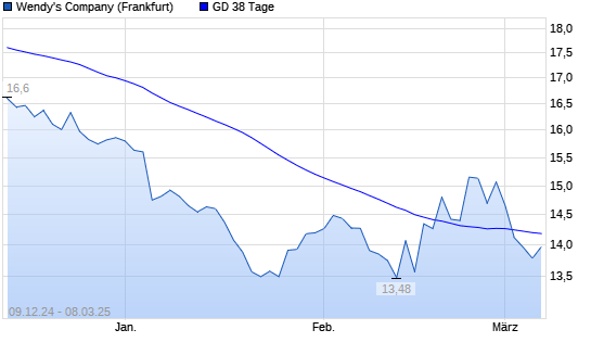 Mit dem Anstieg auf 14,33 EUR hat die The Wendy's Company-Aktie am 07.03.2025 die 38-Tage-Linie nach oben gekreuzt.