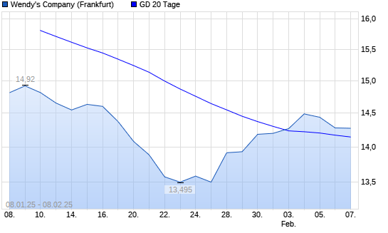 Mit dem Rücksetzer auf 14,06 EUR hat die The Wendy's Company-Aktie am 07.02.2025 die 20-Tage-Linie nach unten gekreuzt.