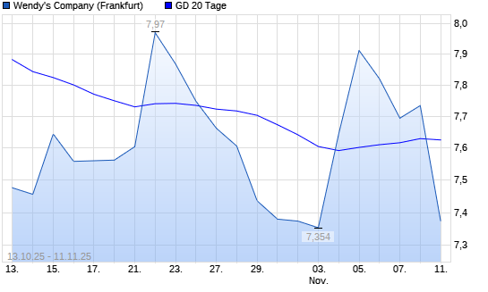 Mit dem Rücksetzer auf 7,34 EUR hat die The Wendy's Company-Aktie am 10.11.2025 die 20-Tage-Linie nach unten gekreuzt.