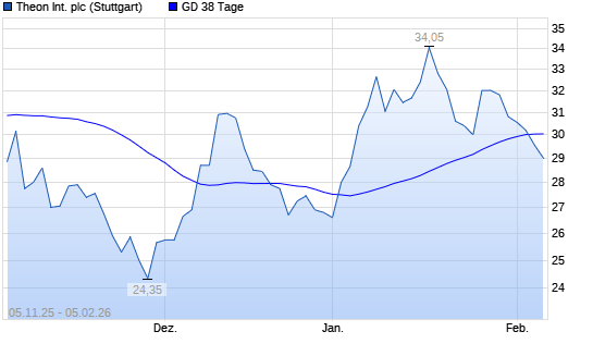 Mit dem Rücksetzer auf 29,55 EUR hat die Theon International-Aktie am 04.02.2026 die 38-Tage-Linie nach unten gekreuzt.