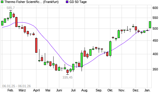 Mit dem Anstieg auf 512,00 EUR hat die Thermo Fisher-Aktie am 05.01.2026 die 50-Tage-Linie nach oben gekreuzt.