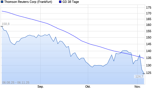 Mit dem Rücksetzer auf 127,10 EUR hat die Thomson Reuters Corp.-Aktie am 05.11.2025 die 38-Tage-Linie nach unten gekreuzt.