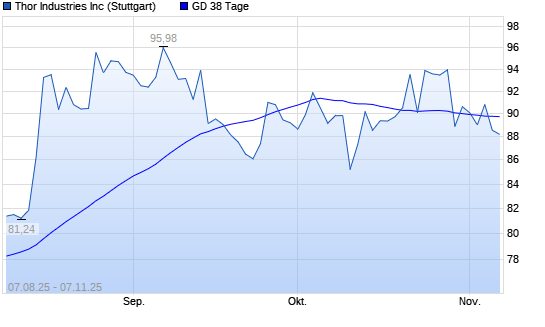 Mit dem Anstieg auf 90,16 EUR hat die Thor Industries-Aktie am 06.11.2025 die 38-Tage-Linie nach oben gekreuzt.