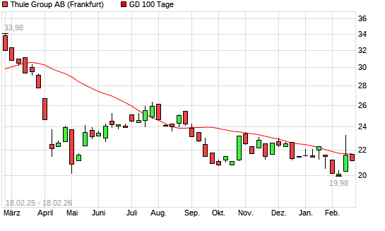 Mit dem Rücksetzer auf 21,14 EUR hat die Thule Group Ord Shs (Proposed)-Aktie am 17.02.2026 die 100-Tage-Linie nach unten gekreuzt.