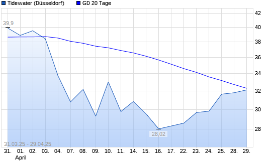 Mit dem Anstieg auf 31,85 EUR hat die Tidewater-Aktie am 28.04.2025 die 20-Tage-Linie nach oben gekreuzt.