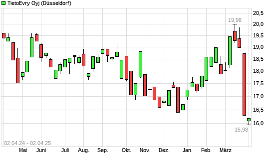 Mit dem Rücksetzer auf 15,94 EUR hat die Tietoevry-Aktie (ISIN FI0009000277) am 01.04.2025 ein neues 10-Jahres-Tief erreicht und damit den Kurs vom 31.03.2025 eingestellt.