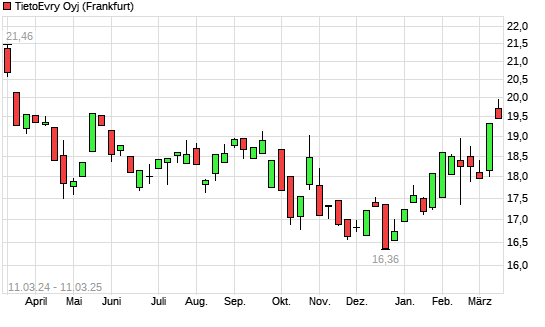 Mit dem Anstieg auf 19,67 EUR hat die Tietoevry-Aktie (ISIN FI0009000277) am 10.03.2025 ein neues 6-Monats-Hoch erreicht und damit den Kurs vom 07.03.2025 eingestellt.