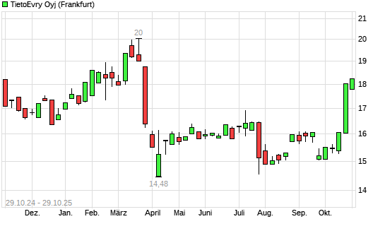 Mit dem Anstieg auf 18,12 EUR hat die Tietoevry-Aktie (ISIN FI0009000277) am 28.10.2025 ein neues 6-Monats-Hoch erreicht und damit den Kurs vom 27.10.2025 eingestellt.