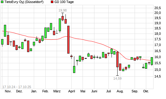Mit dem Anstieg auf 15,91 EUR hat die Tietoevry-Aktie am 16.10.2025 die 100-Tage-Linie nach oben gekreuzt.