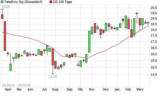 Mit dem Anstieg auf 18,73 EUR hat die Tietoevry-Aktie am 18.03.2026 die 100-Tage-Linie nach oben gekreuzt.