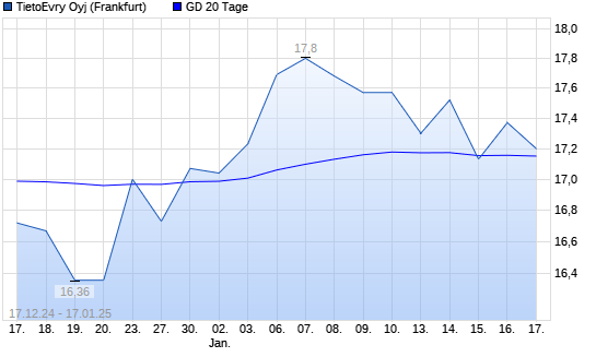 Mit dem Anstieg auf 17,37 EUR hat die Tietoevry-Aktie am 16.01.2025 die 20-Tage-Linie nach oben gekreuzt.