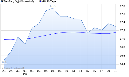 Mit dem Anstieg auf 17,28 EUR hat die Tietoevry-Aktie am 20.01.2025 die 20-Tage-Linie nach oben gekreuzt.