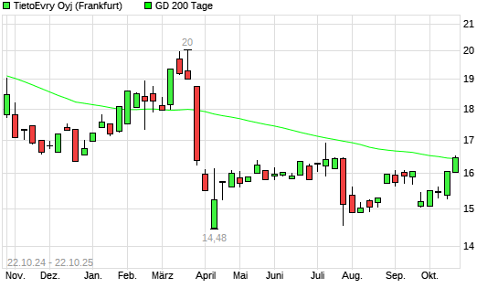 Mit dem Anstieg auf 16,53 EUR hat die Tietoevry-Aktie am 21.10.2025 die 200-Tage-Linie nach oben gekreuzt.