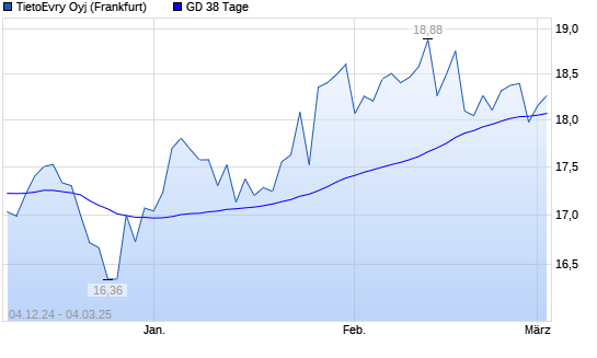 Mit dem Anstieg auf 18,15 EUR hat die Tietoevry-Aktie am 03.03.2025 die 38-Tage-Linie nach oben gekreuzt.