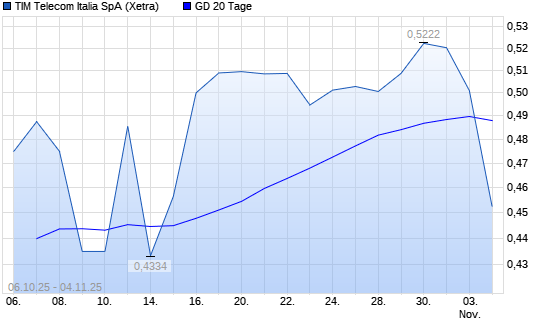 Mit dem Rücksetzer auf 0,49 EUR hat die Tim Group-Aktie am 03.11.2025 die 20-Tage-Linie nach unten gekreuzt.