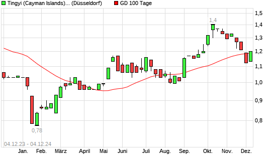 Mit dem Anstieg auf 1,21 EUR hat die Tingyi (Cayman Islands) Holding-Aktie am 03.12.2024 die 100-Tage-Linie nach oben gekreuzt.