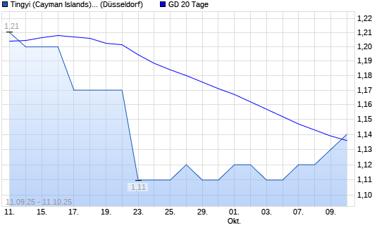 Mit dem Rücksetzer auf 1,11 EUR hat die Tingyi (Cayman Islands) Holding-Aktie am 10.10.2025 die 20-Tage-Linie nach unten gekreuzt.