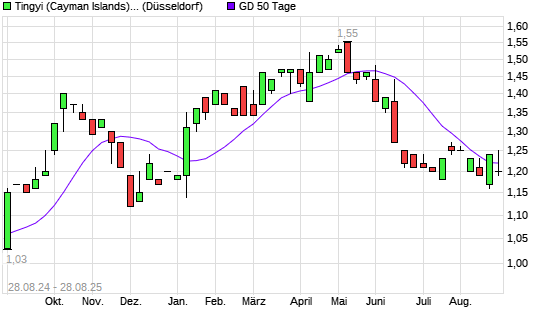 Mit dem Rücksetzer auf 1,23 EUR hat die Tingyi (Cayman Islands) Holding-Aktie am 27.08.2025 die 50-Tage-Linie nach unten gekreuzt.