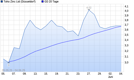 Mit dem Rücksetzer auf 3,64 EUR hat die Toho Zinc-Aktie am 03.06.2025 die 20-Tage-Linie nach unten gekreuzt.
