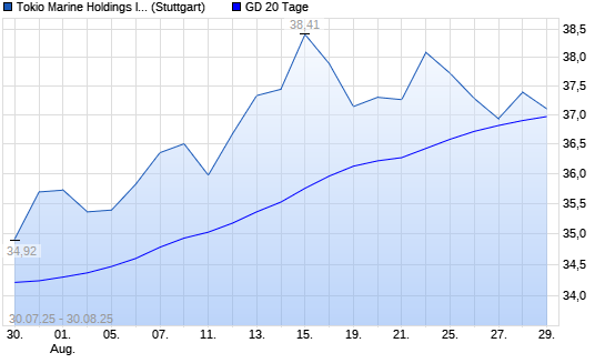 Mit dem Rücksetzer auf 36,60 EUR hat die Tokio Marine Holdings-Aktie am 29.08.2025 die 20-Tage-Linie nach unten gekreuzt.