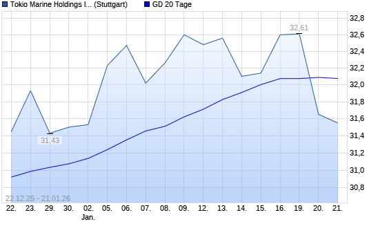 Mit dem Rücksetzer auf 31,44 EUR hat die Tokio Marine Holdings-Aktie am 20.01.2026 die 20-Tage-Linie nach unten gekreuzt.