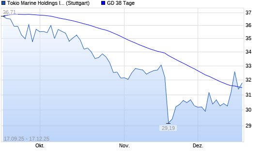 Mit dem Rücksetzer auf 30,62 EUR hat die Tokio Marine Holdings-Aktie am 16.12.2025 die 38-Tage-Linie nach unten gekreuzt.