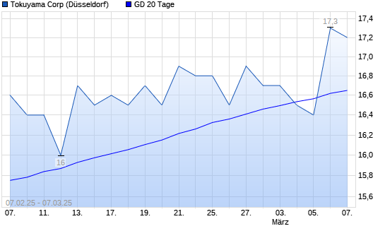 Mit dem Anstieg auf 17,30 EUR hat die Tokuyama-Aktie am 06.03.2025 die 20-Tage-Linie nach oben gekreuzt.