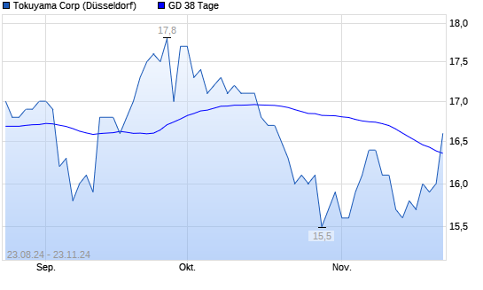 Mit dem Anstieg auf 16,60 EUR hat die Tokuyama-Aktie am 22.11.2024 die 38-Tage-Linie nach oben gekreuzt.