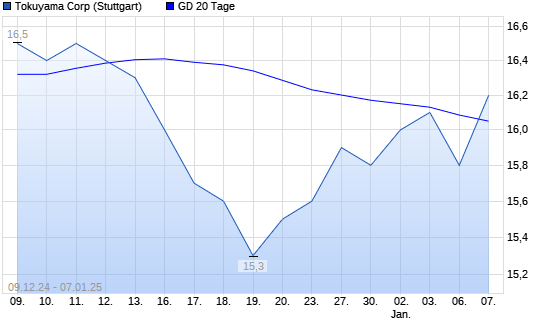 Mit dem Rücksetzer auf 15,80 EUR hat die Tokuyama-Aktie am 06.01.2025 die 20-Tage-Linie nach unten gekreuzt.
