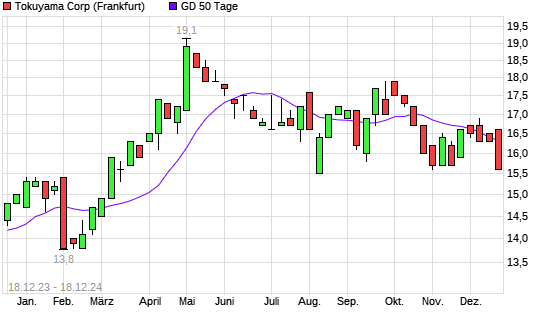 Mit dem Rücksetzer auf 15,70 EUR hat die Tokuyama-Aktie am 17.12.2024 die 50-Tage-Linie nach unten gekreuzt.Die Tokuyama-Aktie befindet sich seit dem 04.12.2024 im langfristigen Abwärtstrend ...weiterlesen