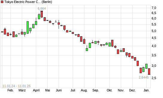 Mit dem Rücksetzer auf 2,66 EUR hat die Tokyo Electric Power-Aktie (ISIN JP3585800000) am 10.01.2025 ein neues 12-Monats-Tief erreicht und damit den Kurs vom 20.12.2024 eingestellt.