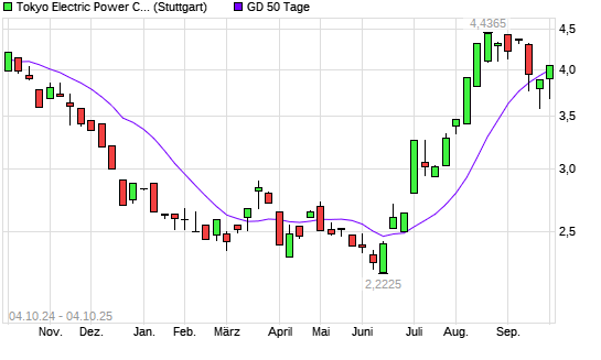 Mit dem Anstieg auf 4,00 EUR hat die Tokyo Electric Power-Aktie am 03.10.2025 die 50-Tage-Linie nach oben gekreuzt.